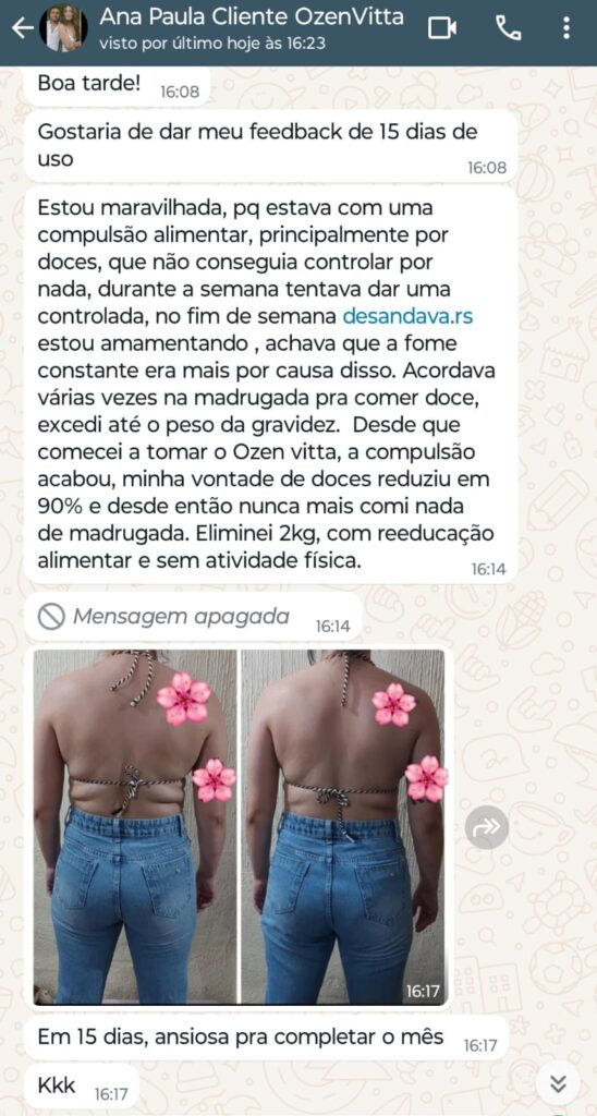 Cecilia eu já tentava emagrecer a mais de 10 anos. O Ozenvitta